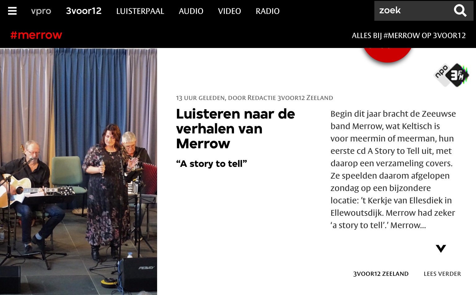 Begin dit jaar bracht de Zeeuwse band Merrow, wat Keltisch is voor meermin of meerman, hun eerste cd A Story to Tell uit, met daarop een verzameling covers. Ze speelden daarom afgelopen zondag op een bijzondere locatie: ’t Kerkje van Ellesdiek in Ellewoutsdijk. Merrow had zeker ‘a story to tell’.’