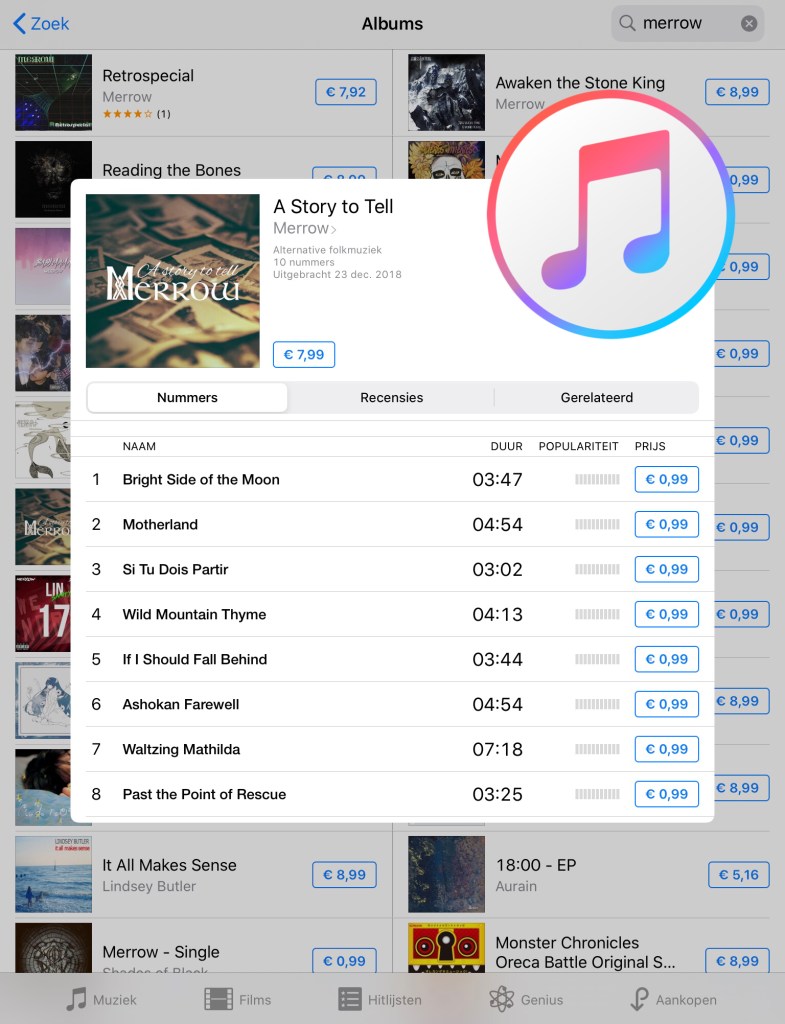 Geplaatst op 13/05/2020 Door Merrow musicITunes Het is zover, ook op ITunes zijn we nu te vinden.Met dank aan WM Digital Services. Dit delen: Klik om te delen op Facebook (Opent in een nieuw venster) Facebook Klik om te delen op X (Opent in een nieuw venster) X Klik om dit te e-mailen naar een vriend (Opent in een nieuw venster) E-mail Vind-ik-leuk Aan het laden...