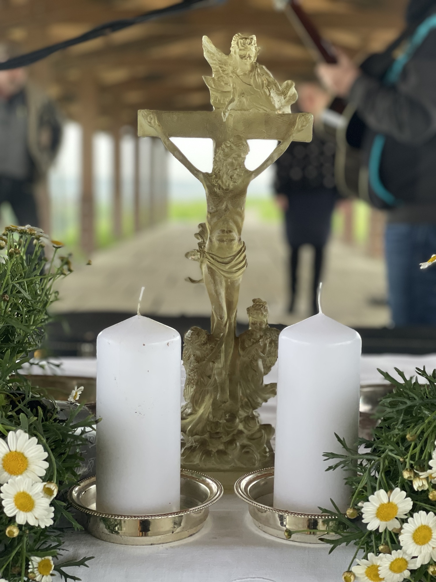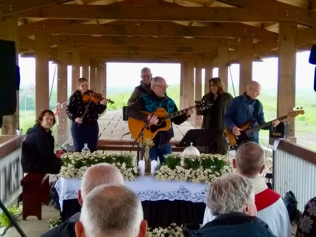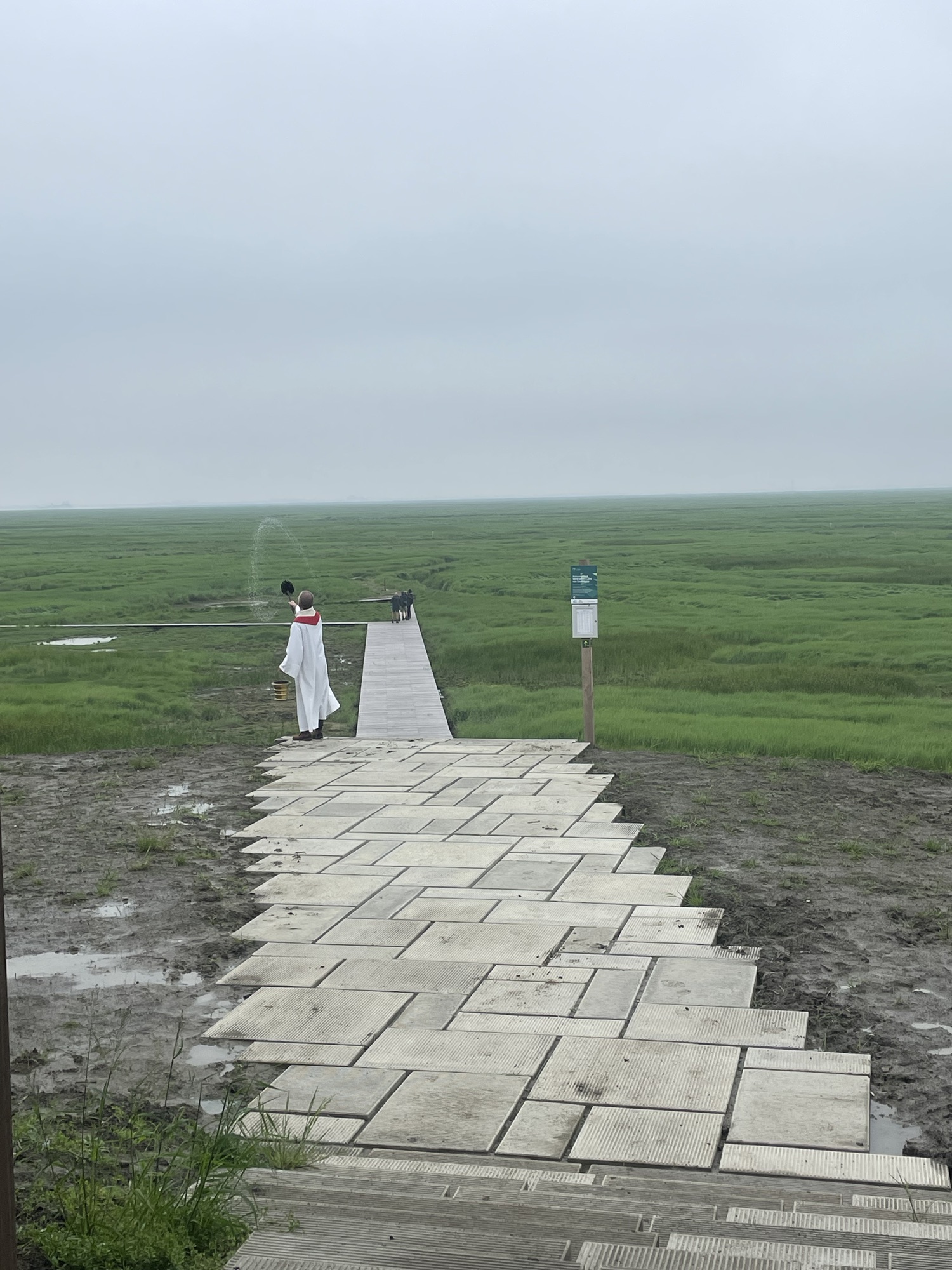 Wat een geslaagde dag! Het begon met de Wijdingsdienst bovenop de dijk, waar pastoor Ralf Grossert de aanwezige gidsen zegende om hen te beschermen tijdens hun werk in en rond het land van Saeftinghe. Dank je wel, Patrick Roelands van JEP, voor de versterking bovenop de dijk! Met de aanwezige wind was dat zeker geen overbodige luxe. Daarna was er eten, drinken en muziek onder de overkapping van het altijd gezellige café van Gina. Bedankt voor de uitnodiging: We hebben enorm genoten; het was heel speciaal!